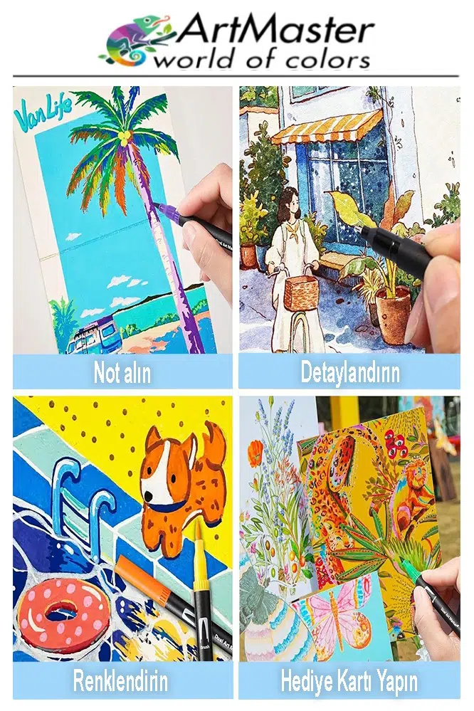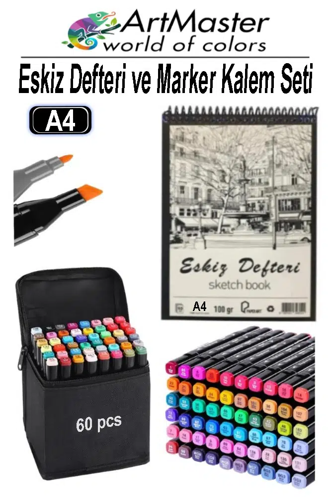 Ürün Adı: Artmaster A4 Eskiz Defteri 50 Yaprak 100 gr 1 Adet 60 Renk Marker Kalem Çift Taraflı Touch Çift Uçlu Eskiz Defteri Boya Seti