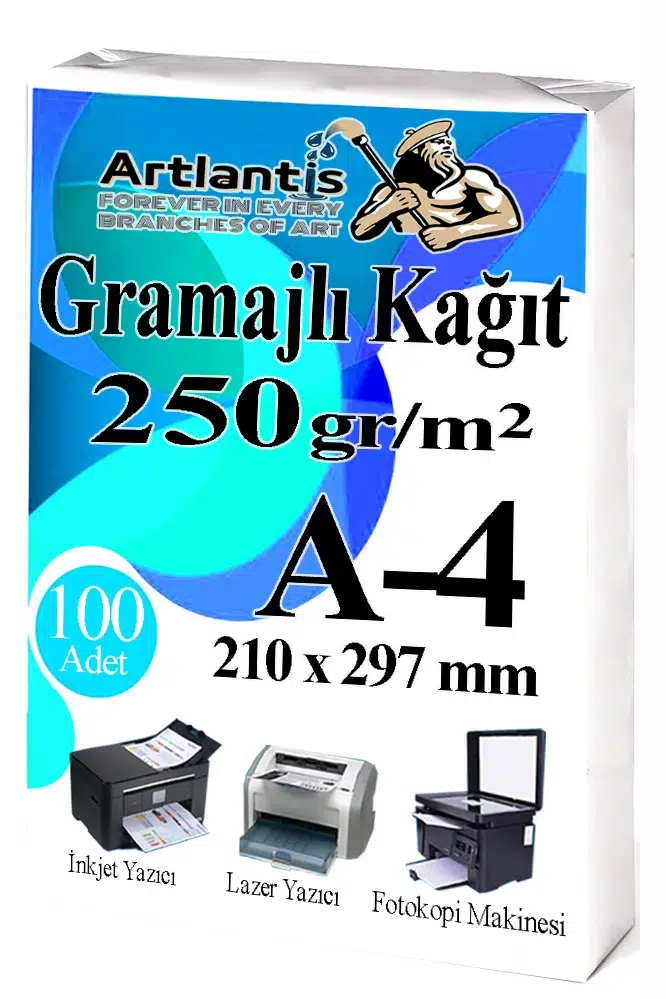Ürün Adı: Artlantis A4 Gramajlı Fotokopi Kağıdı 100 Adet 250 gr Sertifika Kağıdı Kalın Kağıt Baskı Tüm Yazıcılara Uyumlu 21x29.7cm Ofis Büro