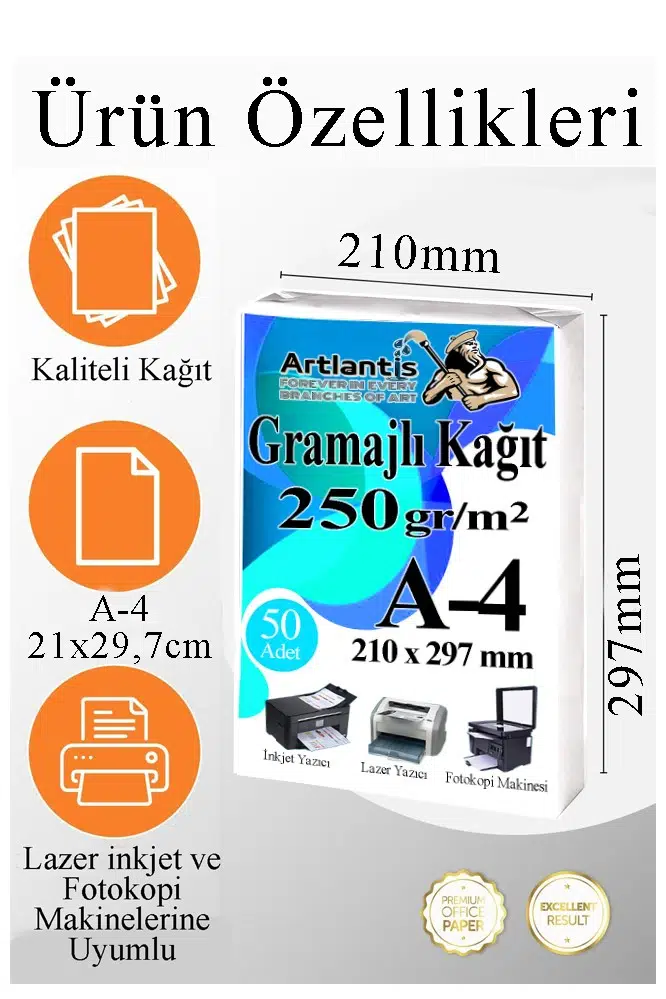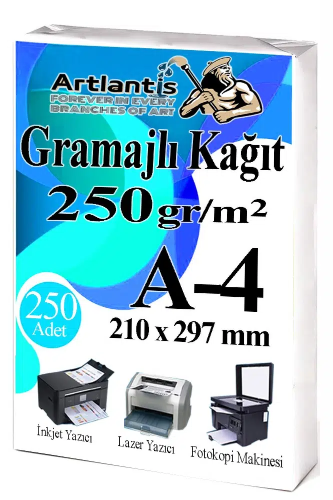 Ürün Adı: Artlantis A4 Gramajlı Fotokopi Kağıdı 250 Adet 250 gr Sertifika Kağıdı Kalın Kağıt Baskı Tüm Yazıcılara Uyumlu 21x29.7cm Ofis Büro