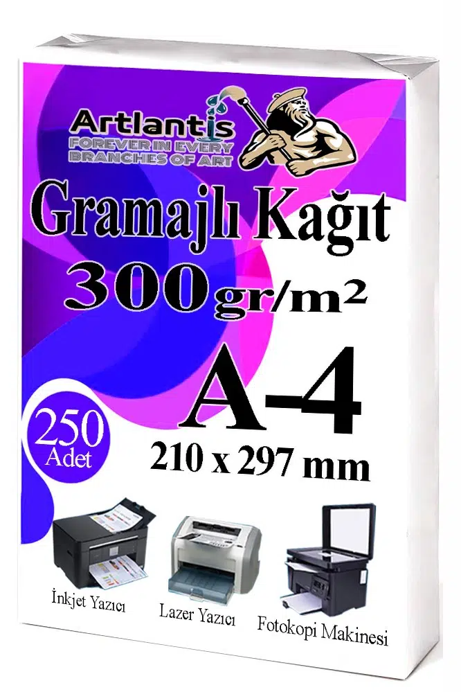 Ürün Adı: Artlantis A4 Gramajlı Fotokopi Kağıdı 250 Adet 300 gr Sertifika Kağıdı Kalın Kağıt Baskı Tüm Yazıcılara Uyumlu 21x29.7cm Ofis Büro