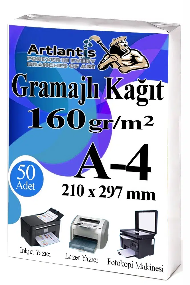 Ürün Adı: Artlantis A4 Gramajlı Fotokopi Kağıdı 50 Adet 160 gr Sertifika Kağıdı Kalın Kağıt Baskı Tüm Yazıcılara Uyumlu 21x29.7cm Ofis Büro