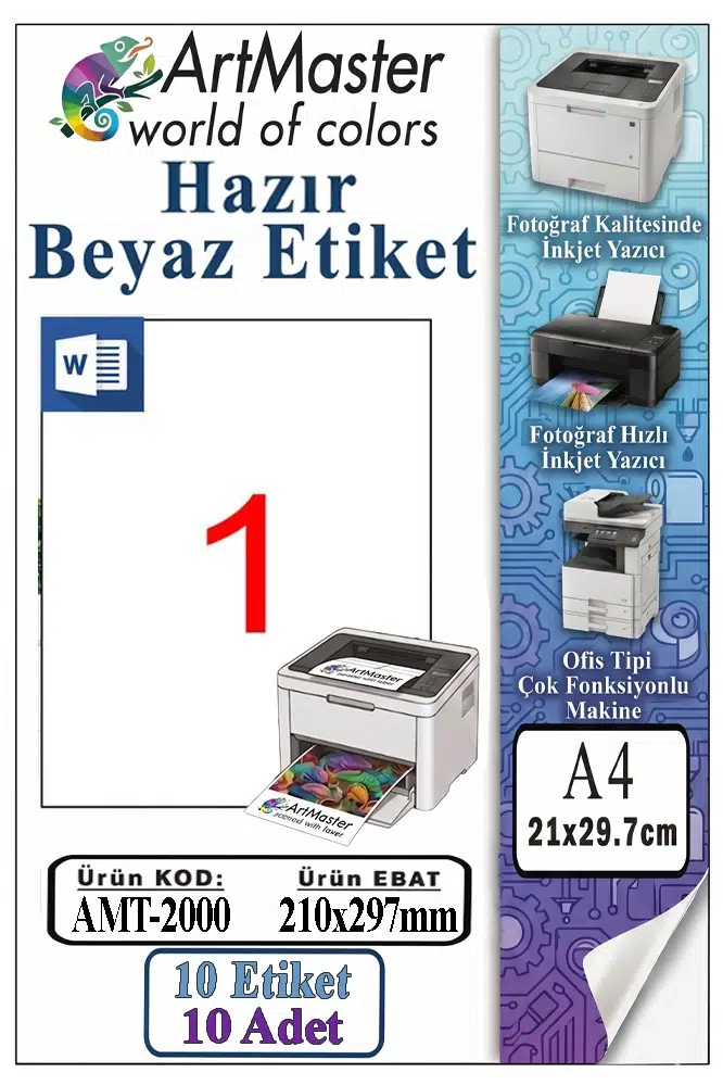 Ürün Adı: ArtMaster A4 Hazır Beyaz Etiket 210x297 mm 10 Sayfa 1 Paket Kendinden Yapışkanlı Fotokopi Lazer İnkjet Kağıdı Yazıcılar İle Uyumlu