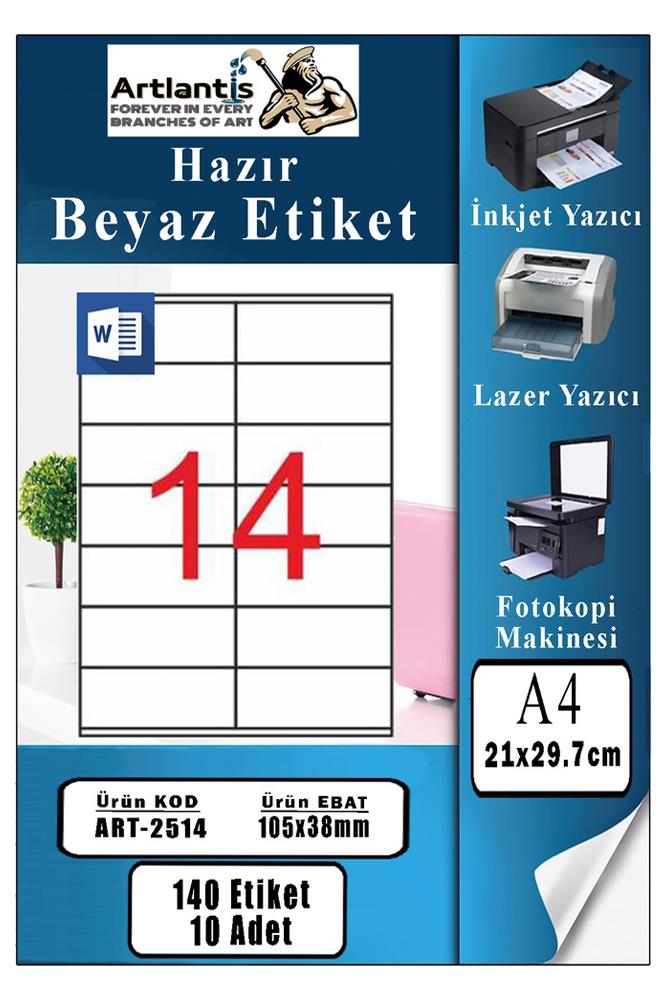 Ürün Adı: A4 Hazır Etiket 105x38 mm 10 Sayfa 1 Paket 14 lü Kendinden Yapışkanlı Fotokopi Lazer İnkjet Kağıdı Yazıcılar İçin Uyumlu Model Kod : 2514