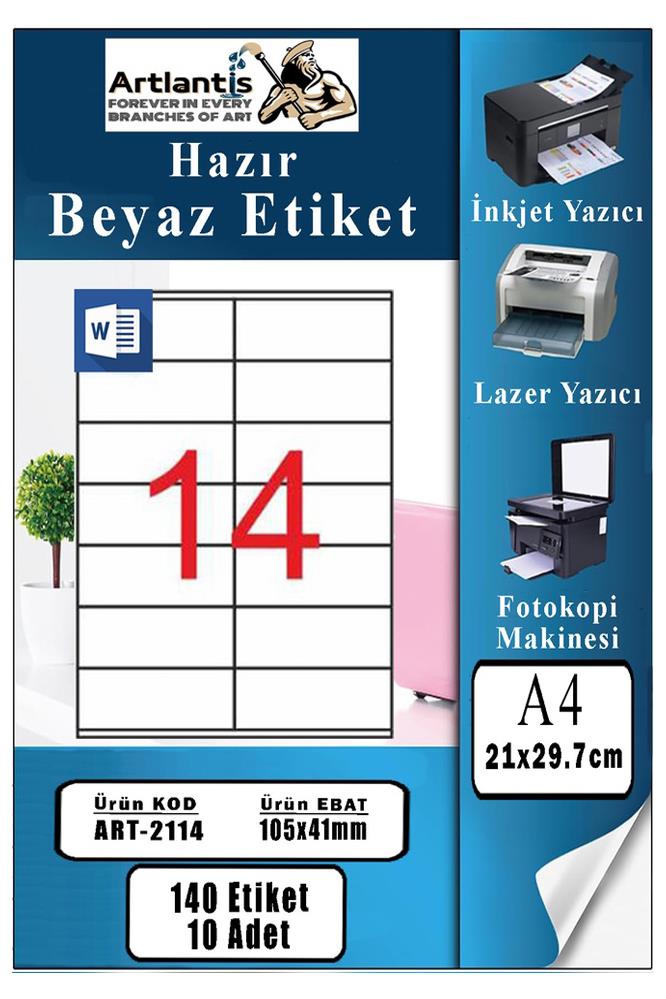 Ürün Adı: A4 Hazır Etiket 105x41 mm 10 Sayfa 1 Paket 14 lü Kendinden Yapışkanlı Fotokopi Lazer İnkjet Kağıdı Yazıcılar İçin Uyumlu Mokel Kod : 2114