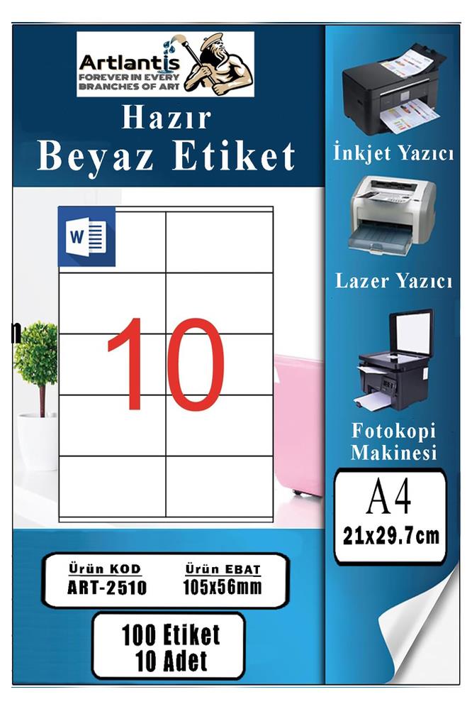 Ürün Adı: A4 Hazır Etiket 105x56 mm 10 Sayfa 1 Paket 10 lu Kendinden Yapışkanlı Fotokopi Lazer İnkjet Kağıdı Yazıcılar İçin Uyumlu Model Kod : 2510