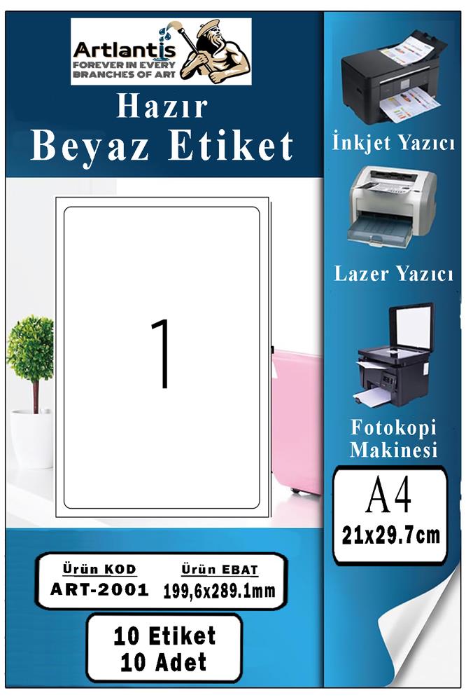 Ürün Adı: A4 Hazır Etiket 199.6x289.1 mm 10 Sayfa 1 Paket Kendinden Yapışkanlı Fotokopi Lazer İnkjet Kağıdı Yazıcılar İçin Uyumlu Mokel Kod : 2001