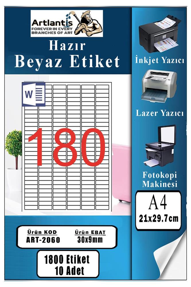 Ürün Adı: A4 Hazır Etiket 30x9 mm 10 Sayfa 1 Paket 180 li Kendinden Yapışkanlı Fotokopi Lazer İnkjet Kağıdı Yazıcılar İçin Uyumlu Mokel Kod : 2060