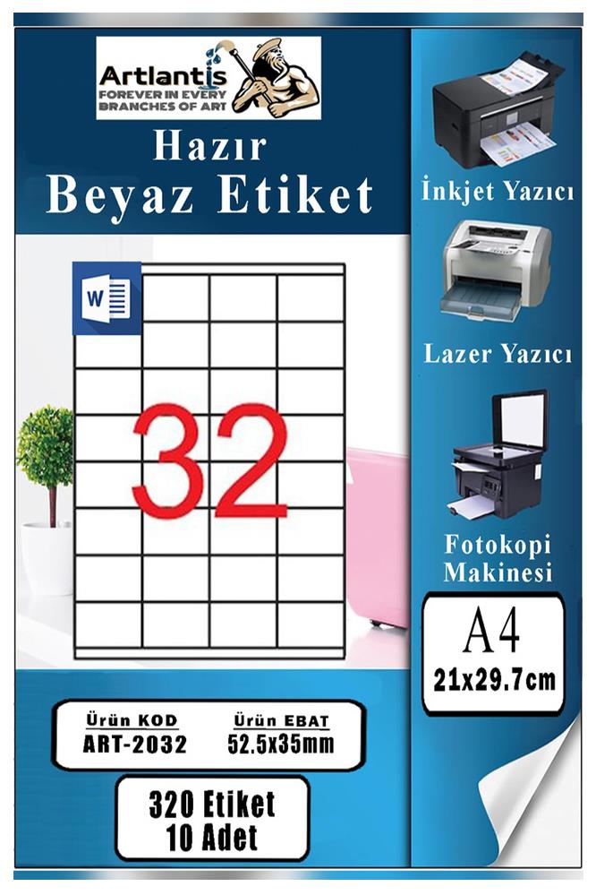 Ürün Adı: A4 Hazır Etiket 52.5x35 mm 10 Sayfa 1 Paket Kendinden Yapışkanlı Fotokopi Lazer İnkjet Kağıdı Yazıcılar İçin Uyumlu Mokel Kod : 2032