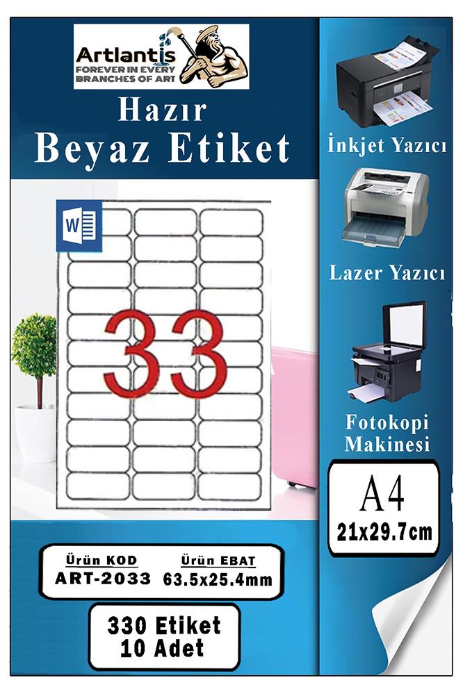Ürün Adı: A4 Hazır Etiket 63.5x25.4 mm 10 Sayfa 1 Paket Kendinden Yapışkanlı Fotokopi Lazer İnkjet Kağıdı Yazıcılar İçin Uyumlu Mokel Kod : 2033