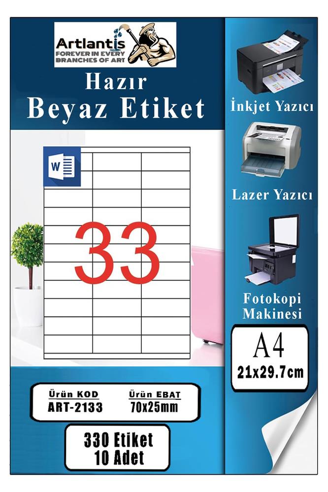 Ürün Adı: A4 Hazır Etiket 70x25 mm 10 Sayfa 1 Paket 33 lü Kendinden Yapışkanlı Fotokopi Lazer İnkjet Kağıdı Yazıcılar İçin Uyumlu Mokel Kod : 2133