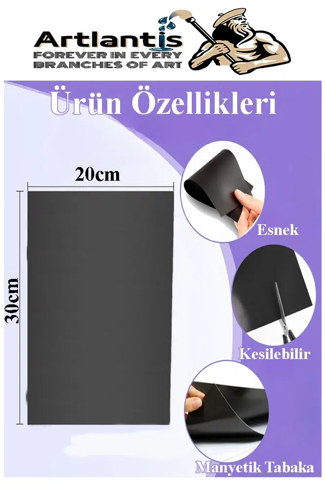 Her manyetik levha, zamandan ve emekten tasarruf etmenizi sağlayacak şekilde A4 20 cm x 30 cm boyutundadır. El sanatları ihtiyaçlarınıza uygun özel şekil ve boyutlarda esnek ve kesilebilir.Bu boyut, yapışkan etiketlerin manyetik olması için idealdir.