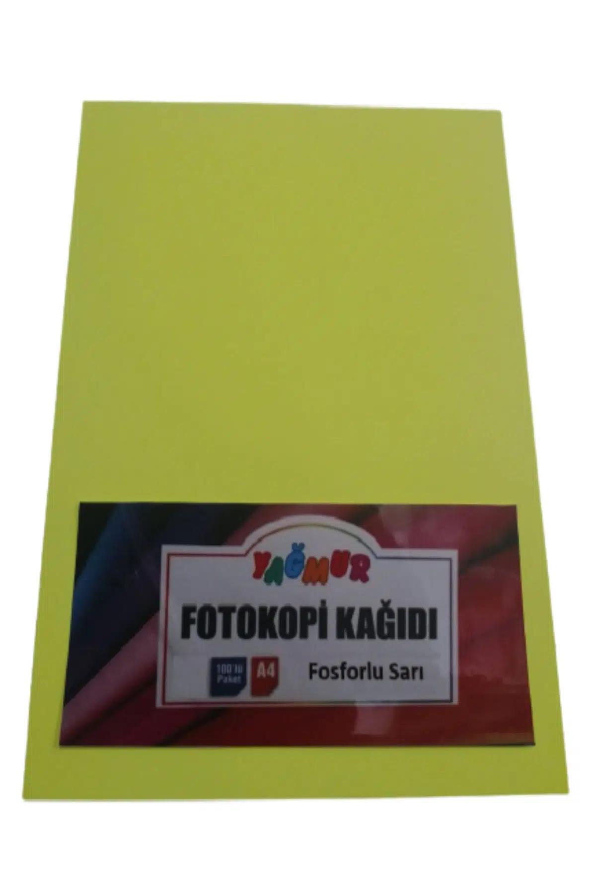 • Fosforlu Sarı fotokopi kağıdı A4 paketinde 80 gramlık 100 adet kağıt bulunur