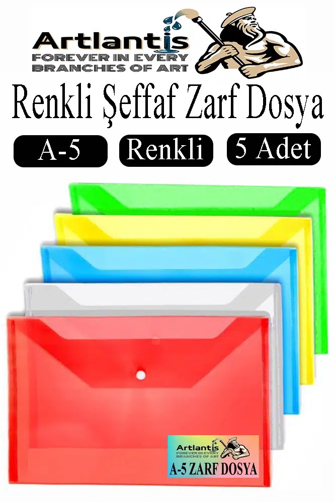 Ürün Adı: A5 Çıtçıtlı Dosya Şeffaf Renkli Zarf Dosya 5 Renk 17x22 cm Çıt Çıtlı Dosya Su Geçirmez 50 Yaprak Kapasiteli