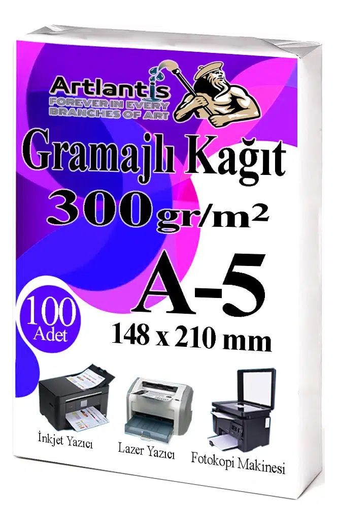 Ürün Adı: Artlantis A5 Gramajlı Fotokopi Kağıdı 100 Adet 300 gr Sertifika Kağıdı Kalın Kağıt Baskı Tüm Yazıcılara Uyumlu 14.8x21cm Ofis Büro