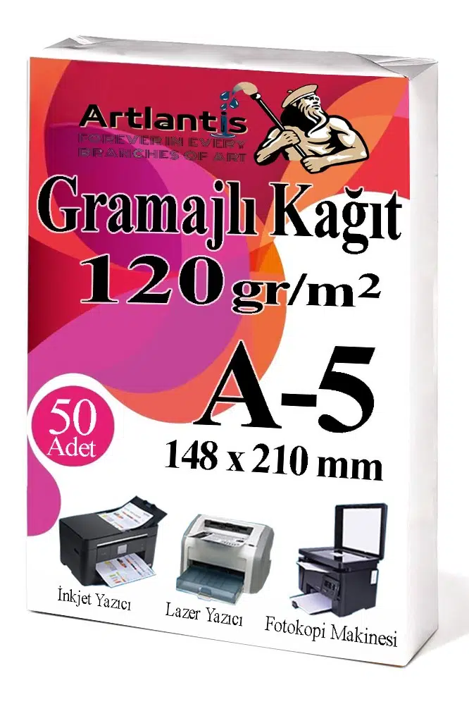 Ürün Adı: Artlantis A5 Gramajlı Fotokopi Kağıdı 50 Adet 120 gr Sertifika Kağıdı Kalın Kağıt Baskı Tüm Yazıcılara Uyumlu 14.8x21cm Ofis Büro