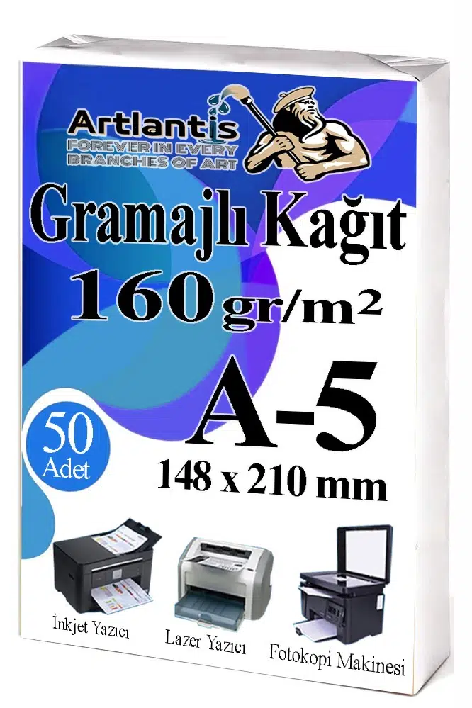 Ürün Adı: Artlantis A5 Gramajlı Fotokopi Kağıdı 50 Adet 160 gr Sertifika Kağıdı Kalın Kağıt Baskı Tüm Yazıcılara Uyumlu 14.8x21cm Ofis Büro