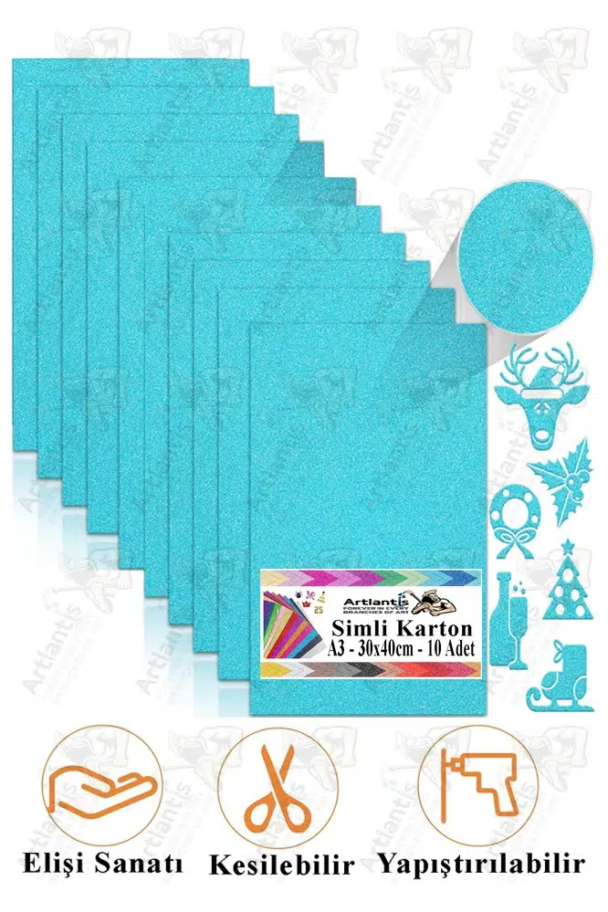 | Etiketler | Açık Mavi Simli Karton A3 30x40 cm 10 lu 1 Paket Simli Fon Kartonu Parıltılı Kağıt Anasınıfı Kreş Etkinlik Proje |