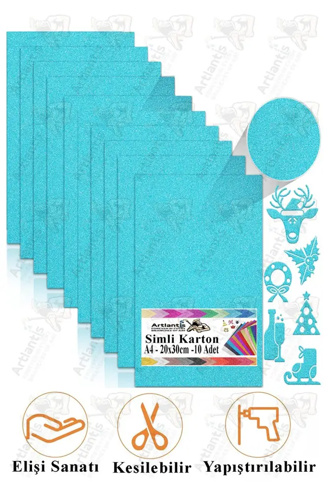 | Etiketler | Açık Mavi Simli Karton A4 20x30 cm 10 lu 1 Paket Simli Fon Kartonu Parıltılı Kağıt Anasınıfı Kreş Etkinlik Proje |
