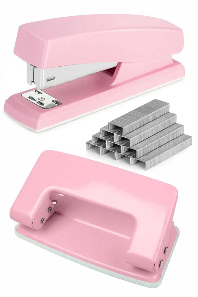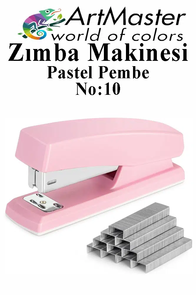 Ürün Adı: Artmaster Açık Pembe Zımba Makinesi No:10 ve Delgeç 1 Adet Küçük Zımba Makinası ve Teli Kağıt Delgeci Perfaratör Büro Ofis Okul