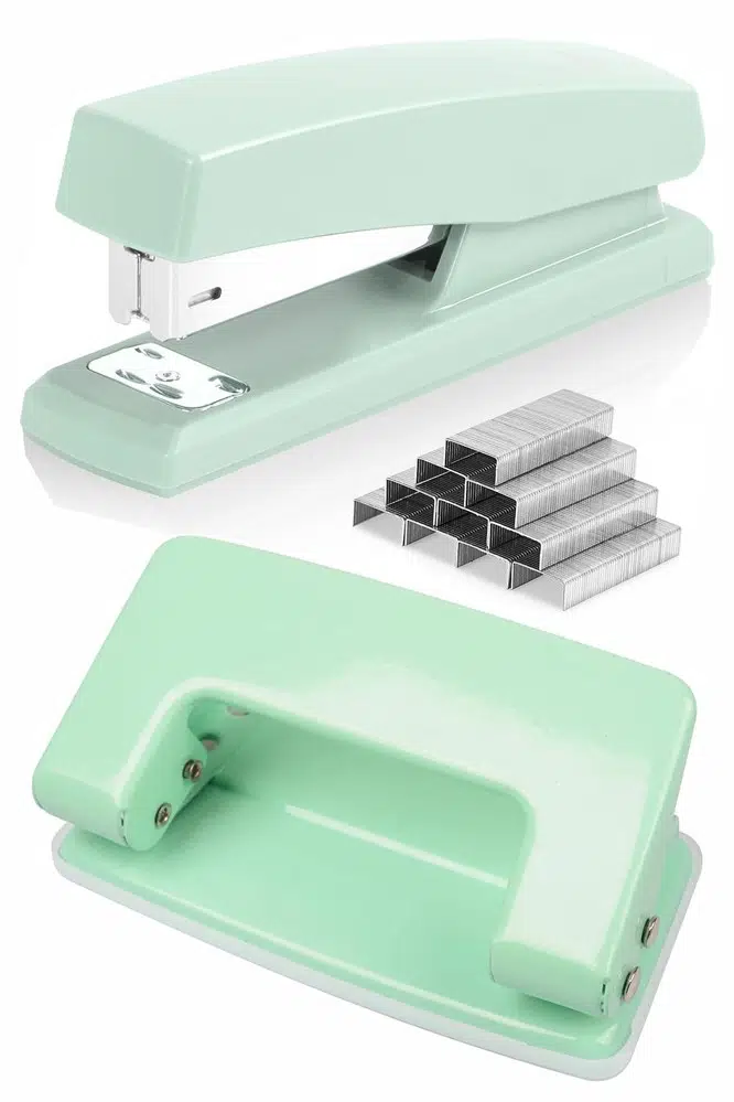 Ürün Adı: Artmaster Açık Yeşil Zımba Makinesi No:10 ve Delgeç 1 Adet Küçük Zımba Makinası ve Teli Kağıt Delgeci Perfaratör Büro Ofis Okul