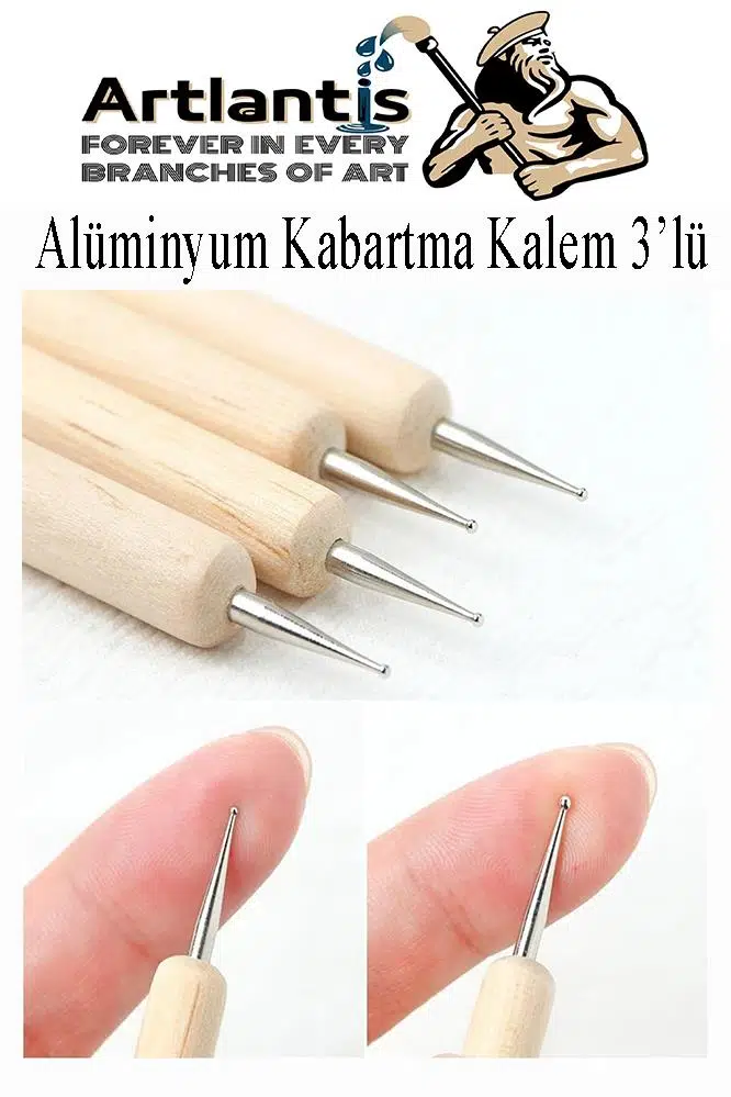 Ürün Adı: Ahşap Alüminyum Kabartma Kalemi 3 lü 1 Paket Aliminyum Folyo Kabartma Çift Uçlu İzleme Noktalama Kalemi Gravür