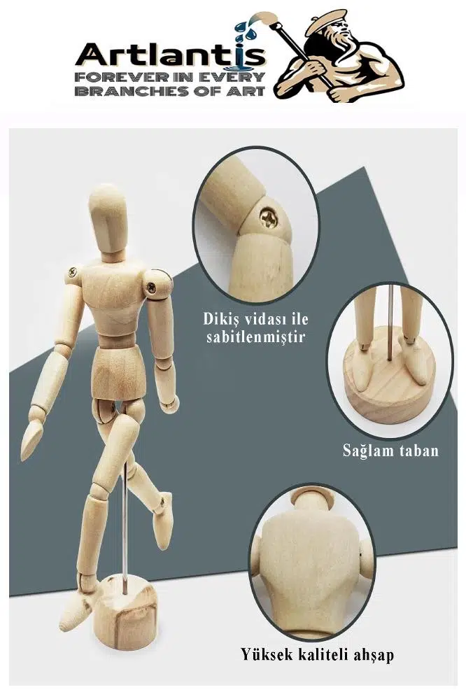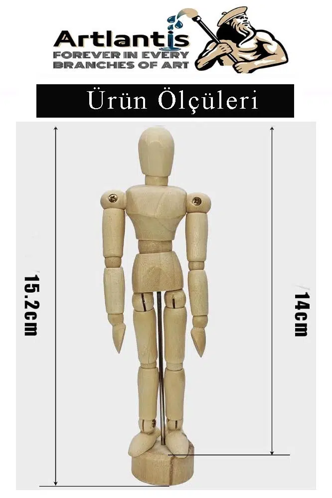 Ürün Adı: Ahşap İnsan Modeli 14 cm 1 Adet İnsan Figürlü Ahşap Model Manken Resim Ressam Eğitimi Tahta Adam Kukla Stilist