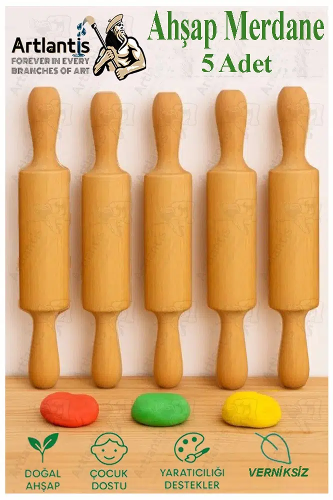 Ürün Adı: Ahşap Merdane 17 cm 5 Adet Okul Öncesi Oyun Hamuru Şekillendirici ve Gıda İçin Uygun Naturel Merdane Seti