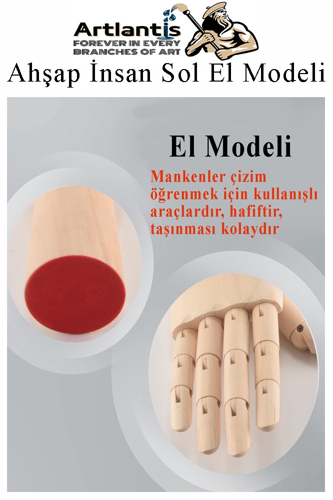 Ahşap el mankeni, sanatçı için oran, form ve gölgeleme öğrenme modeli olarak yararlı bir referans aracı olmakla kalmaz, aynı zamanda mağaza teşhiri, masa teşhiri, mücevher ekranı, fotoğraf pervanesi, sanat modeli, eklemli sanatçılar ve daha fazlası için mükemmeldir.
