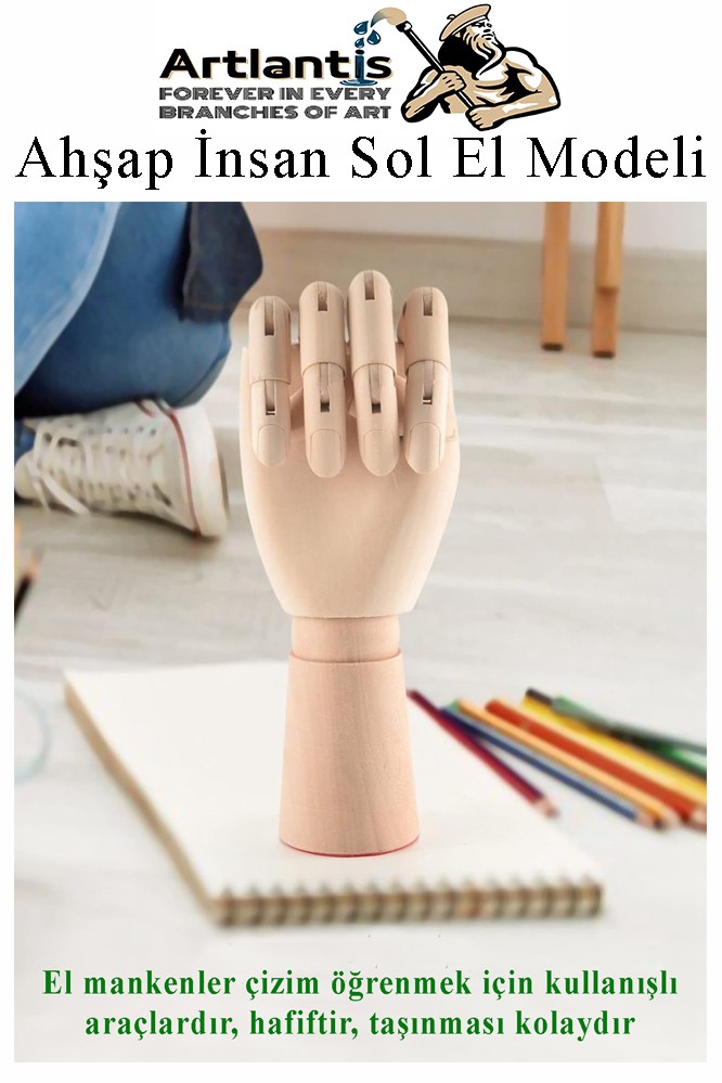 Ürün Adı: Ahşap Sol El Modeli 18 cm 1 Adet Sol El Maketi Çoçuk Ahşap Manken Sol El Parmak Model Hareketli Esnek Eskiz Çizim Boyama