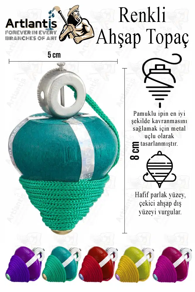 Ürün Adı: Artlantis Ahşap Topaç 3 Adet Renkli Kaliteli Ahşap Topaç İpli Dönene Zilli Ağaç Topaç Nostaljik Oyuncak Geleneksel Okul Öncesi