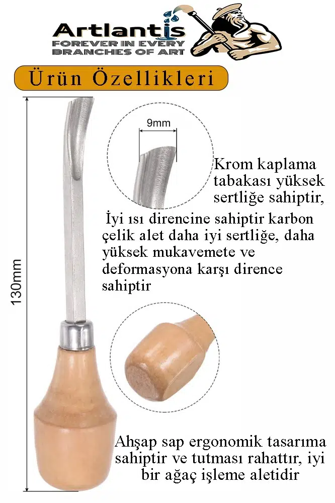 Ahşap oyma kitimiz kayın ağacından kulplarla birlikte gelir. Avucunuzun kıvrımıyla hizalanacak şekilde yapılandırılmış olup, uzun süreli kullanım sırasında bile yorgunluğu en aza indiren rahat, kaymaz bir tutuş sağlar.