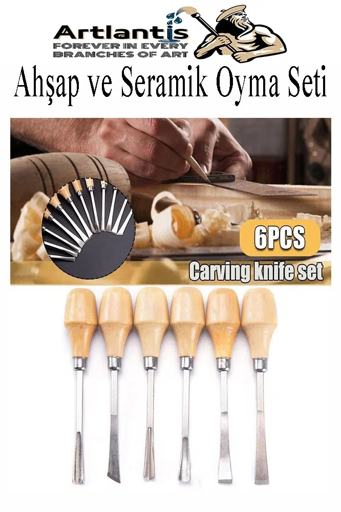 Ürün Adı: Ahşap ve Seramik Oyma Seti Kısa Sap 6 lı 1 Paket İskerpela Seti Paslanmaz Karbon Çelik Bıçaklı Ağaç Oyma Bıcağı Çömlek