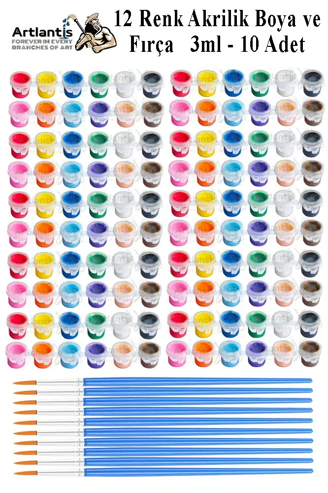 Ürün Adı: Akrilik Boya 3 ml 12 Renk Resim Fırçası 10 Paket Mini Küçük Akrilik Boya Taş Ahşap Seramik Tuval Alçı Tuval Etkinlik