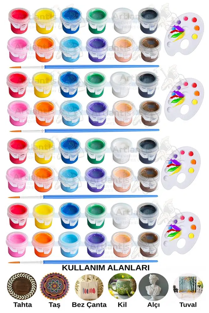 renk yelpazesi sunar. Akrilik boya saklama kapları, dikkatlice açılıp kapatıldığında güvenli bir sızdırmazlık sağlayan geçmeli kapaklarla donatılmıştır. Boyanın kurumasını önlemek için kullandıktan sonra kapağı kapatmayı unutmayın. Ek olarak, kolayca taşınabilirler ve yaratıcı çabalar sırasında uygun renk seçimi için özelleştirilebilirler-Artlantis boya fırçası paketi resim dersi ve normal kullanıma uygundur.