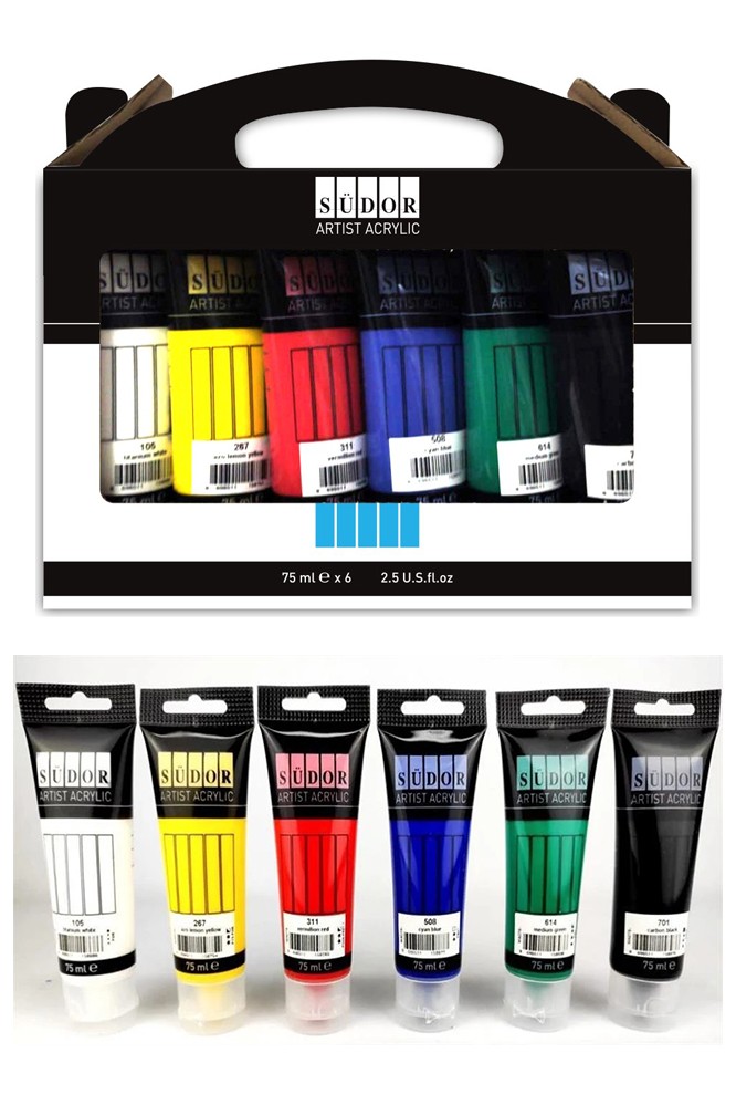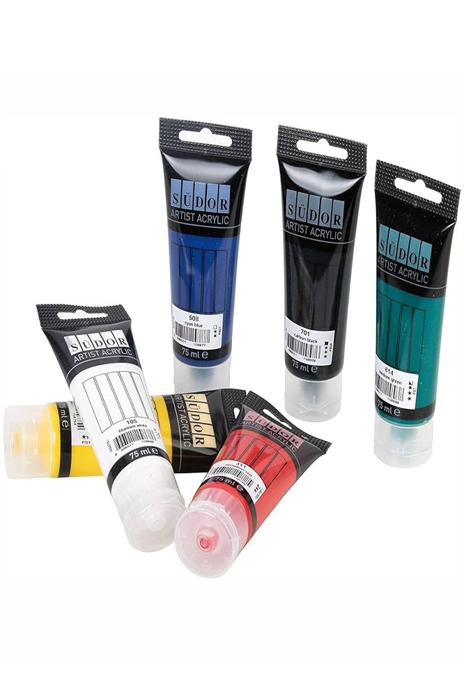 -Südor 6*75ml artist acrylic akrilik boya 6 adet ana renkten oluşmaktadır