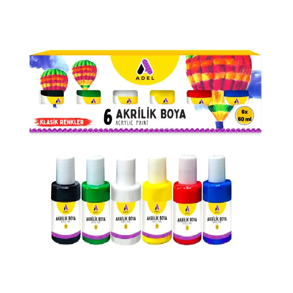 Ürün Adı: Adel Akrilik Boya Ana Renkler 6x60 ml 1 Paket