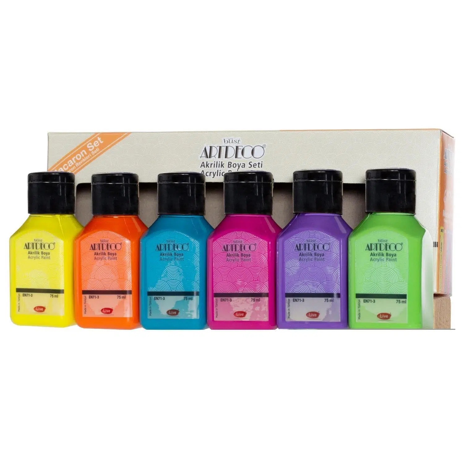 Ürün Adı: Akrilik Boya Seti 6x75 ml Makaron 1 Paket Artdeco Akrilik Boya 6 Renk 75 ml Makaron Renkler Yumuşak Pastel Renk