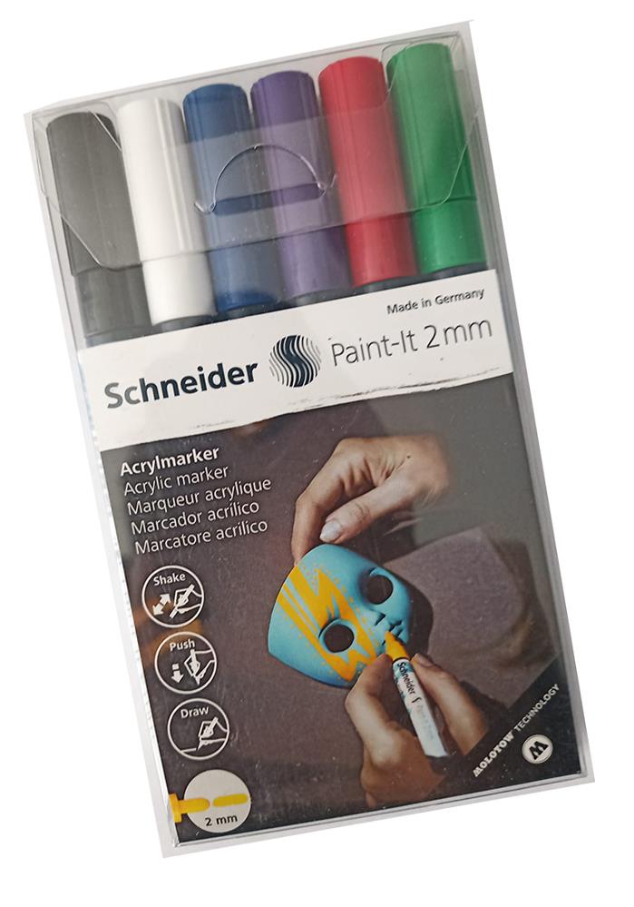 Ürün Adı: Schneider Akrilik Markör 2.0 mm 6 lı Ana Renkler 1 Paket
