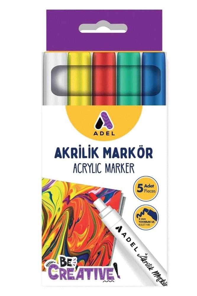 Ürün Adı: Akrilik Markör Seti 5 Renk 1 Paket 2 mm Yuvarlak Uçlu Akrilik Marker Keçe Uçlu Seramik Ahşap Kumaş Tuval Metal Taş Her Yüzeye Adel