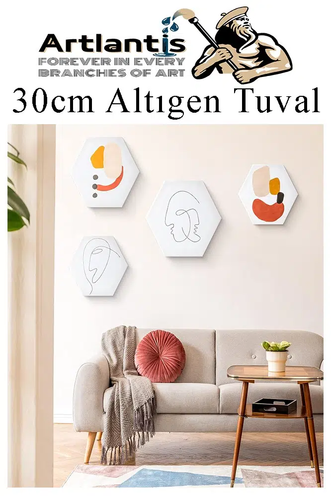 Ürün Adı: Altıgen Tuval 30 cm 1 Adet Arkadan Zımbalı Astarlı Resim Tuvali Akrilik Boya Yağlı Boya Altıgen Şekil Tuval Ressam Sanat