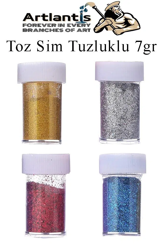 Ürün Adı: Altın Gümüş Kırmızı Mavi Toz Sim Tuzluklu 7 gr 4 Adet Renkli Toz Sim Epoksi Reçine Okul Etkinlik Dekarasyon Slime