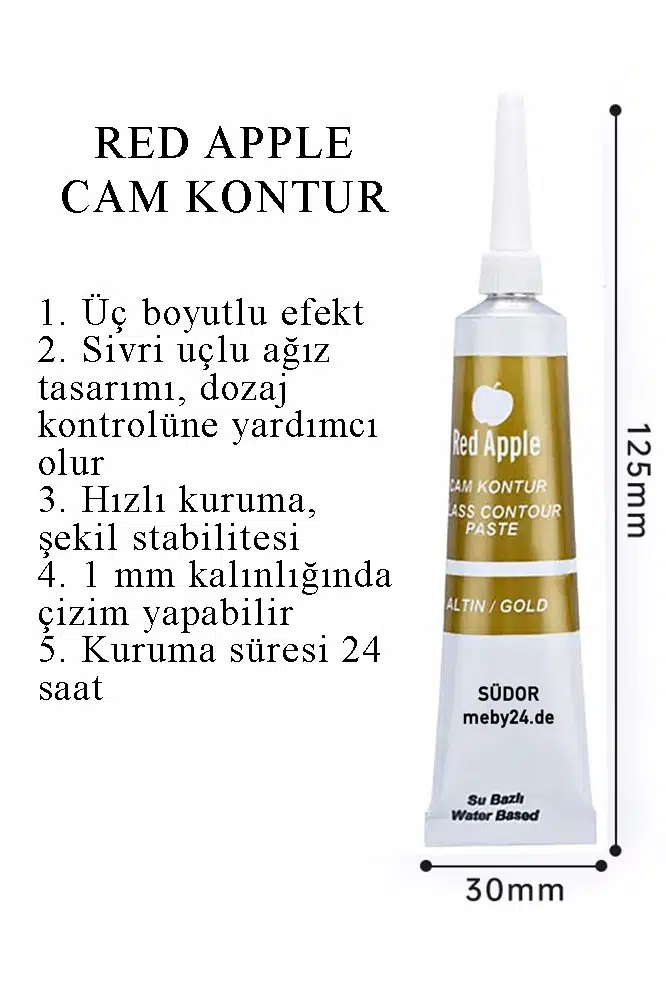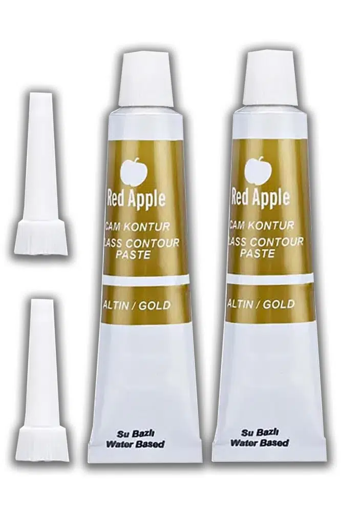 Ürün Adı: Altın Sarı Kontür Boyası 20 ml 2 Adet Red Apple Cam Vitray Boyası Kontur Boyası Ana Hatları Çizme Sanatsal Hobi