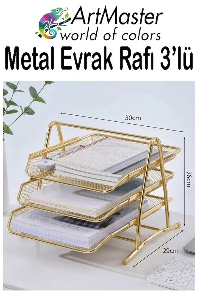 | Etiketler | Altın Sarı Metal Evrak Rafı 3 lü 1 Paket Masaüstü A4 Dosya 3 Katlı Düzenleyici Kağıt Tepsisi Metal Fileli Hareketli |