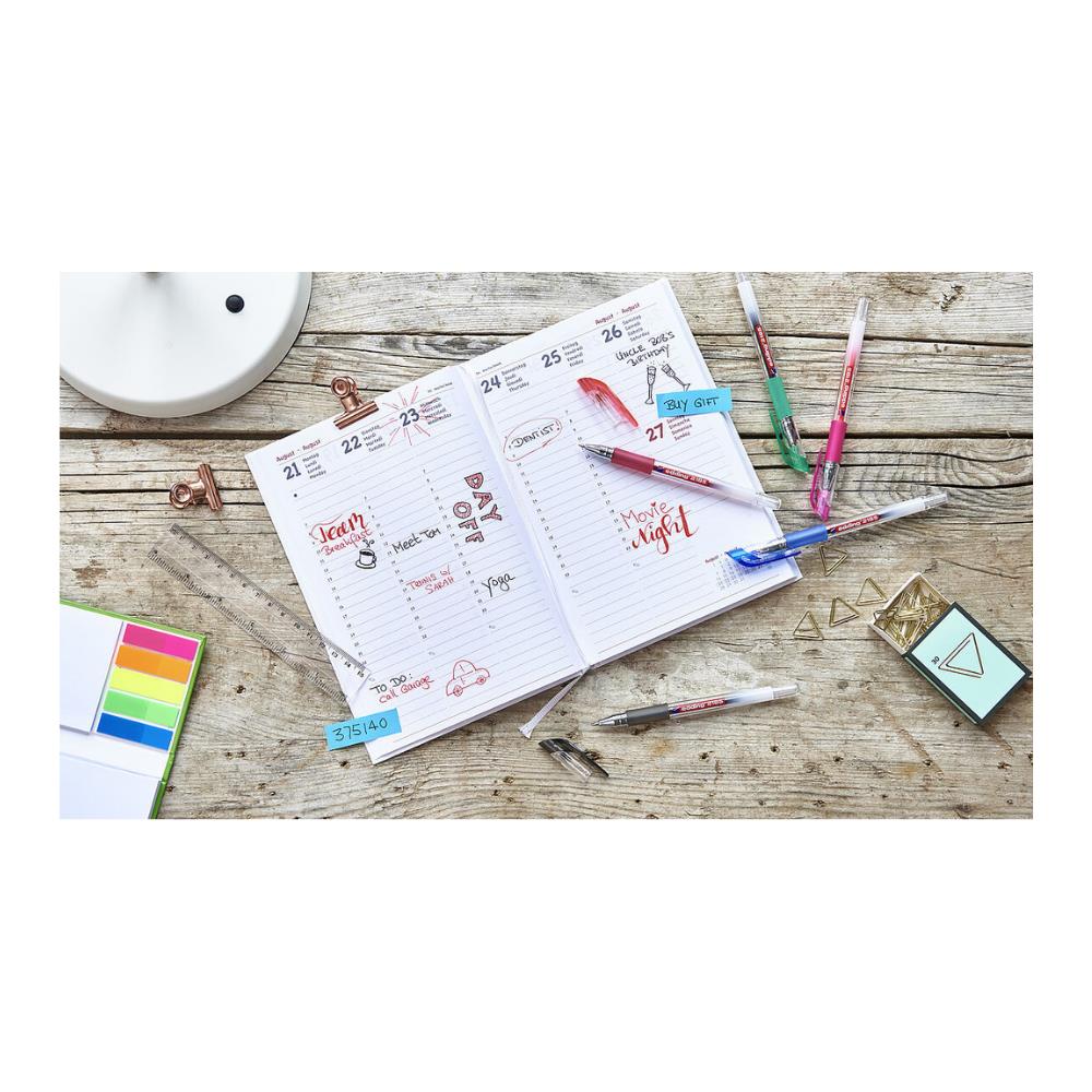 - Açık renkli kâğıt üzerinde ve metalik ile pastel renkler için koyu kâğıt üzerinde akıcı ve hassas yazı yazma için jel mürekkepli kalem