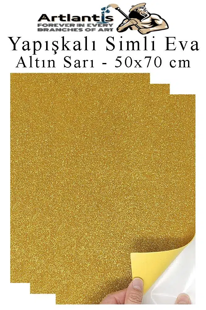 Ürün Adı: Altın Sarı Yapışkanlı Simli Eva 50x70 cm 3 Adet Simli Yapışkanlı Eva Süngeri Okul Kreş Anasınıfı Elişi Etkinlikleri Hobi
