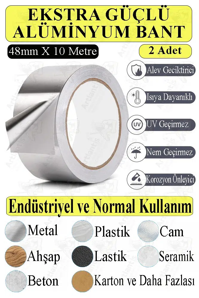 | Etiketler | Alüminyum Bant 10 Metre 2 Paket Aliminyum Folyo Yapışkanlı Band Aspiratör Soba Borusu Tamir Sıcaklığa Dayanıklı Yanmaz |