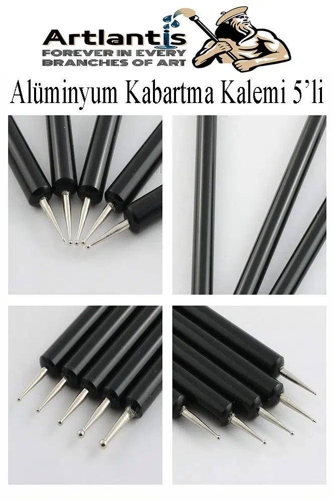Ürün Adı: Alüminyum Kabartma Kalemi 5 li 1 Paket Aliminyum Folyo Kabartma Çift Uçlu İzleme Noktalama Kalemi Gravür