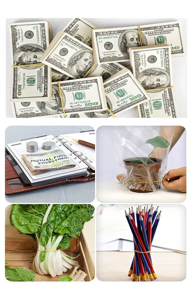 GENİŞ KULLANIM ALANLARI: Lastik bantlar, banknotları düzenlemek, balık torbalarını bağlamak, kartları bantlamak, kalemleri bağlamak, kırık paket servis kabınızın kapağını kapalı tutmak, posteri yakın tutmak, bitkileri tutturmak, elektronik cihaz kablolarını tutmak vb. için idealdir.