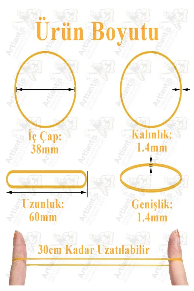 MÜKEMMEL BOYUT: Bu küçük lastik bantlar yaklaşık 6 cm uzunluğunda, 4 cm çapında ve 1,4 mm kalınlığındadır; bantlar, 30 cm'ye kadar uzayabilen güçlü bir elastike sahiptir.