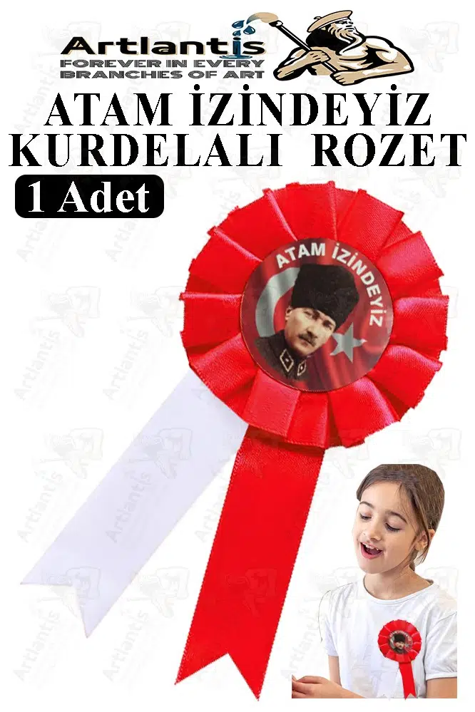 Ürün Adı: Artlantis Atam İzindeyiz Atatürk Kurdelalı Rozet 1 Adet Kırmızı Beyaz Yaka Rozeti Çocuk Bayram Etkinlik 15 cm Kokart